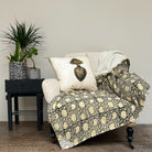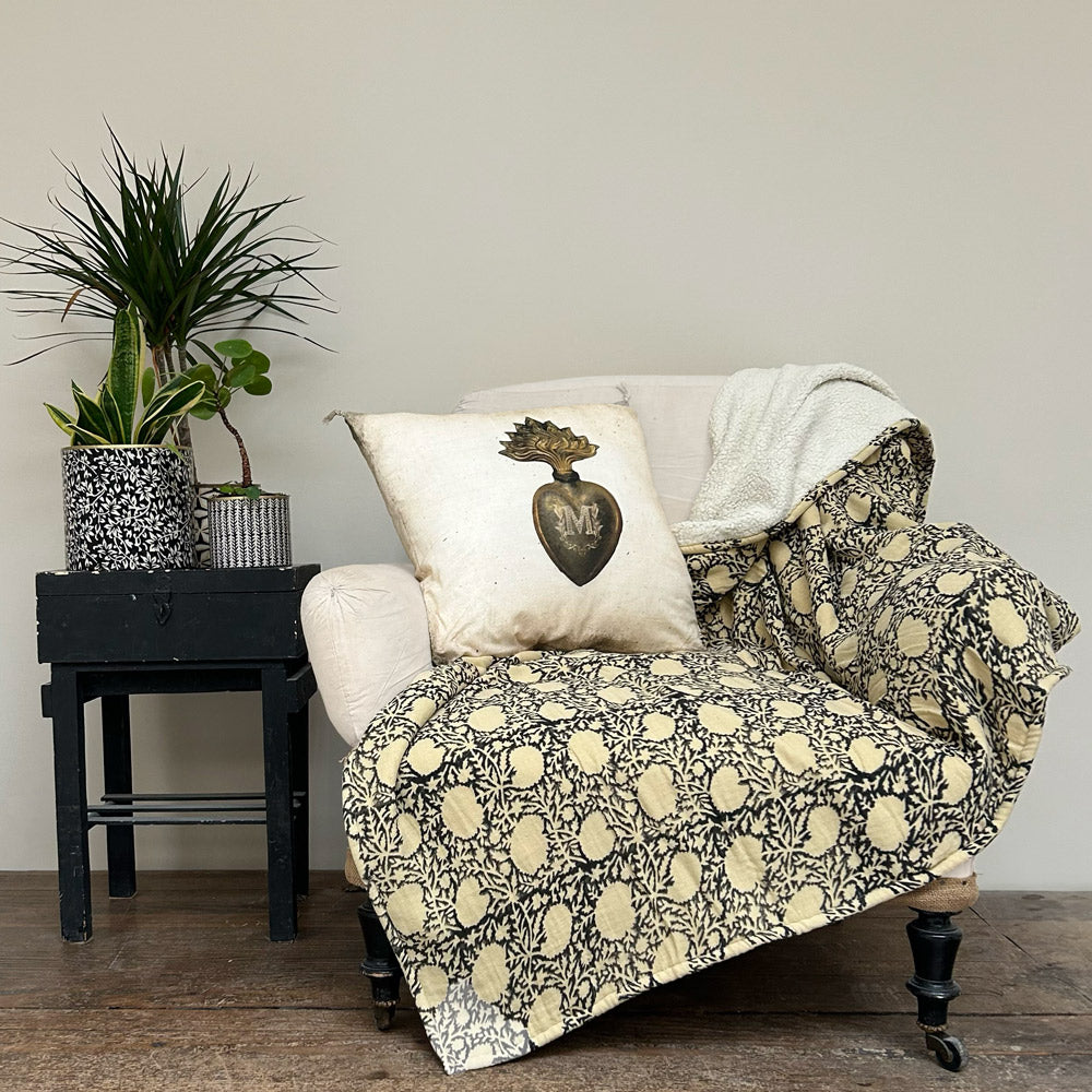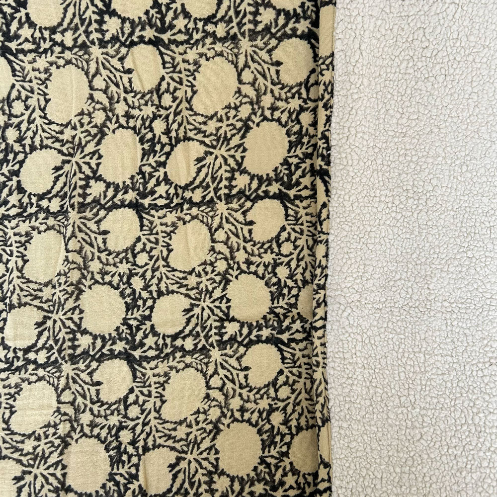 Cotton - sherpa blanket hand-printed with a wooden stamp in India.