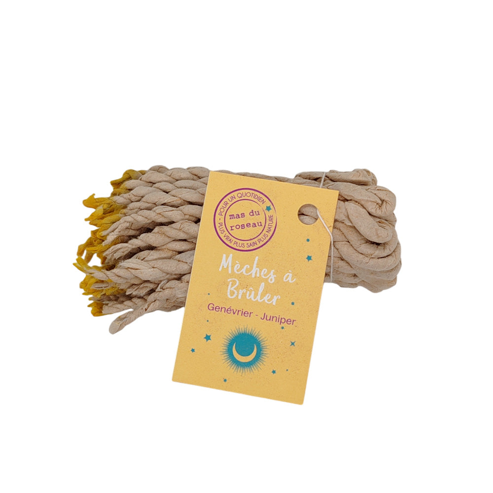 Bundles of juniper-scented wicks for burning. Burn time is approximately 15 minutes.