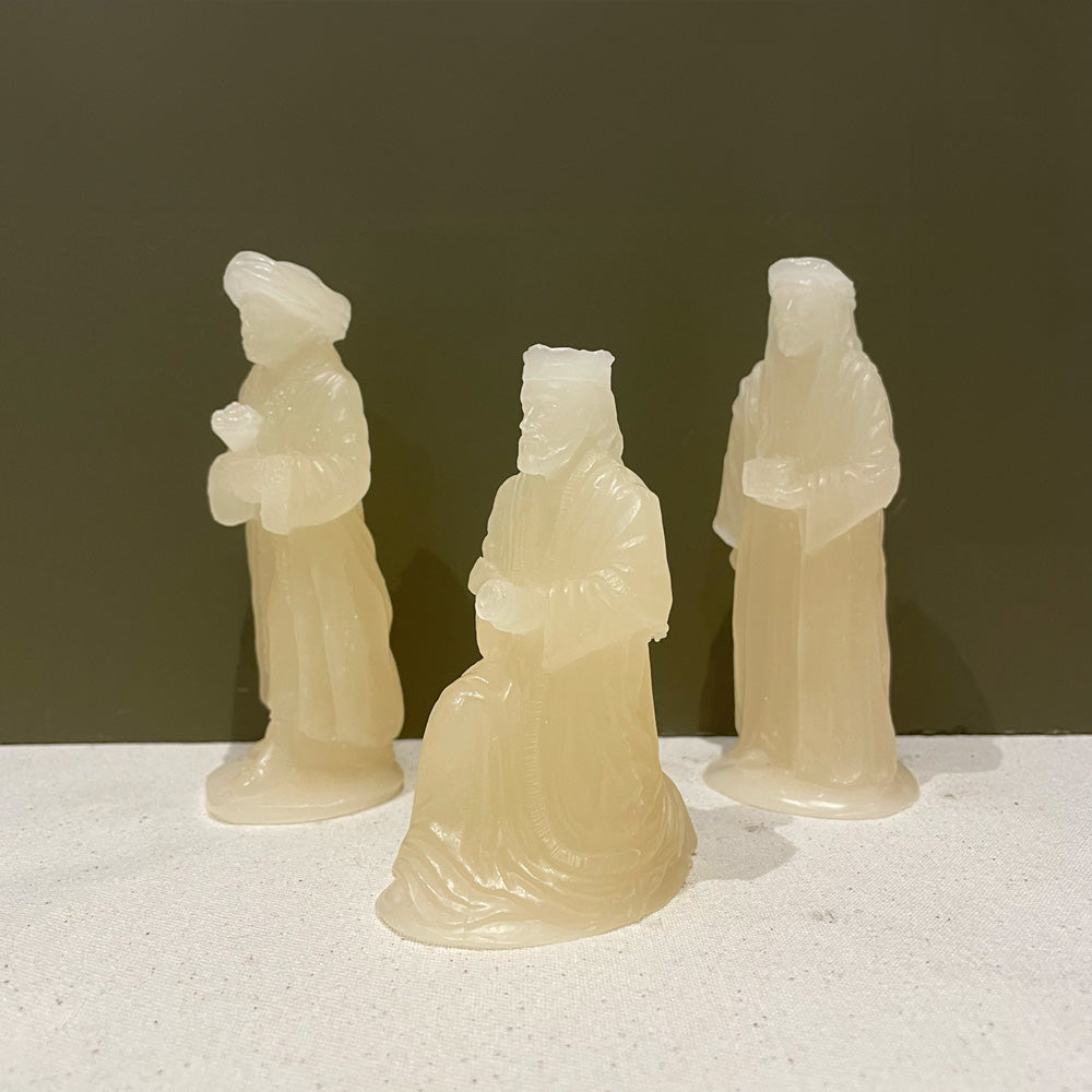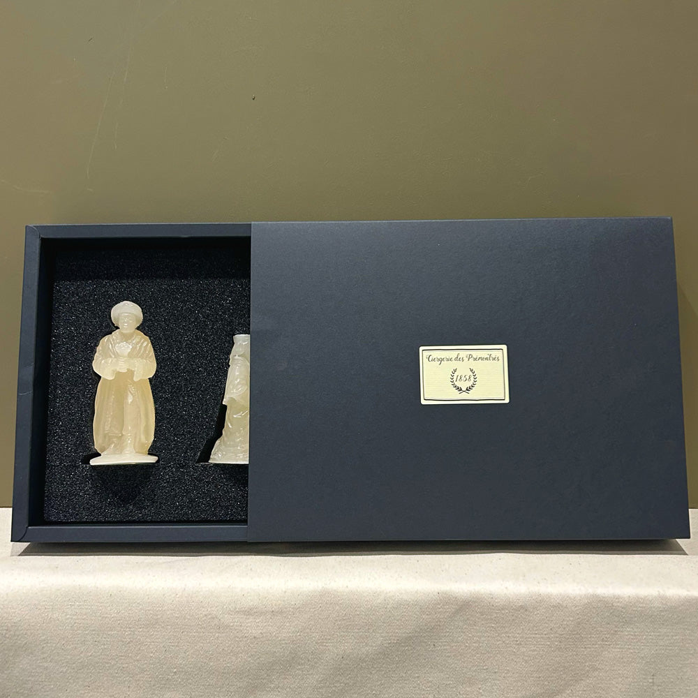 Box containing the 3 wise men: Melchior, Caspar and Balthazar. They arrive in a black box and are held in foam.