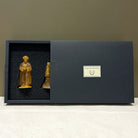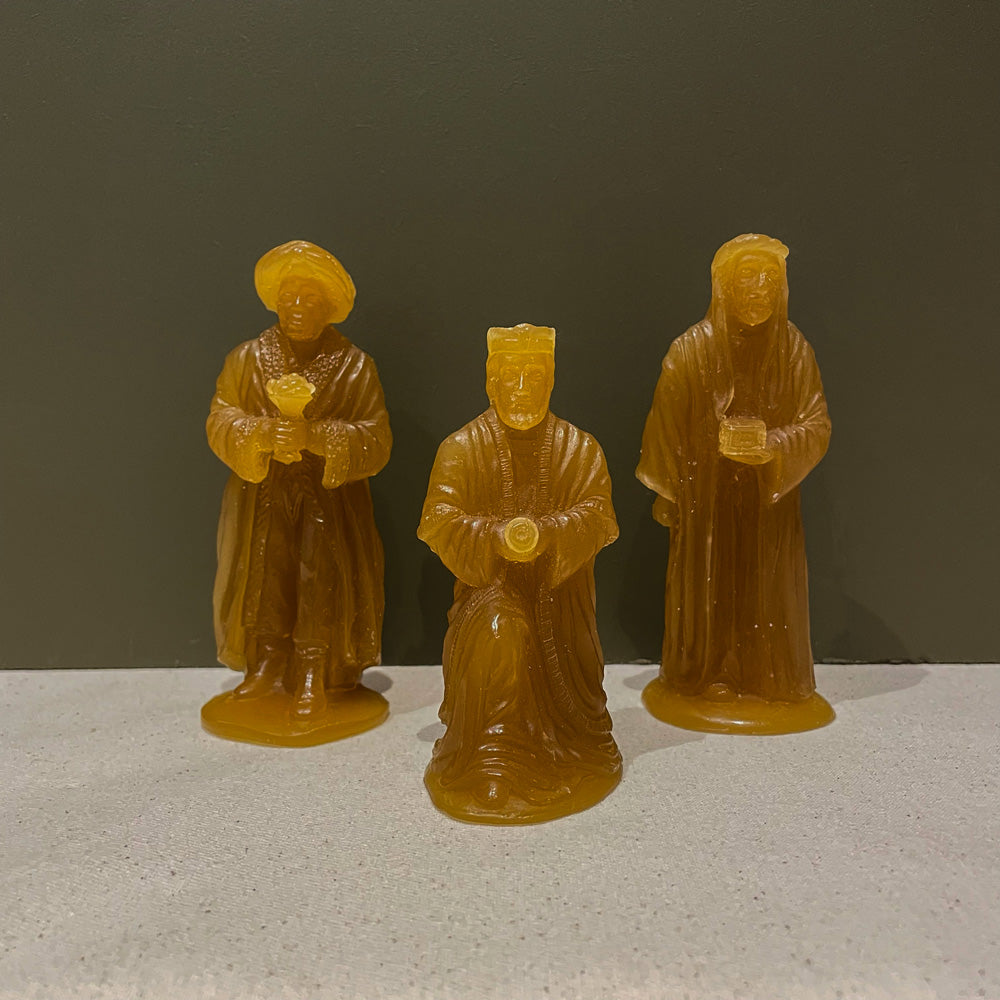 Box containing the 3 wise men: Melchior, Caspar and Balthazar. They arrive in a black box and are held in foam.