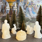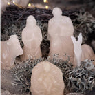 Set of five subjects representing the nativity scene: Jesus, Mary, Joseph, the donkey and the ox. Papyrus color.