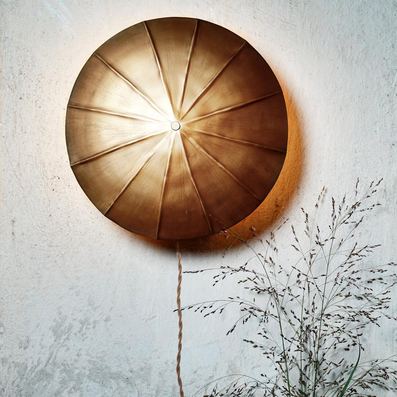 Round brass wall light.