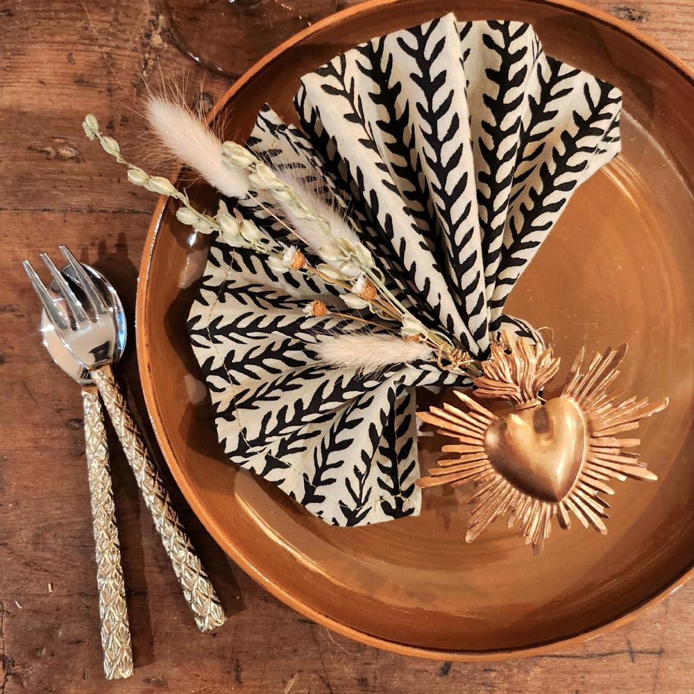 "Thorns" printed cotton table napkin by BONCOEURS.