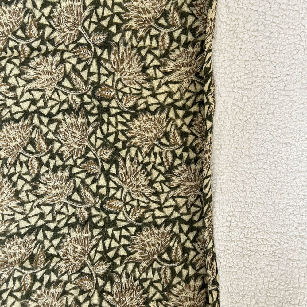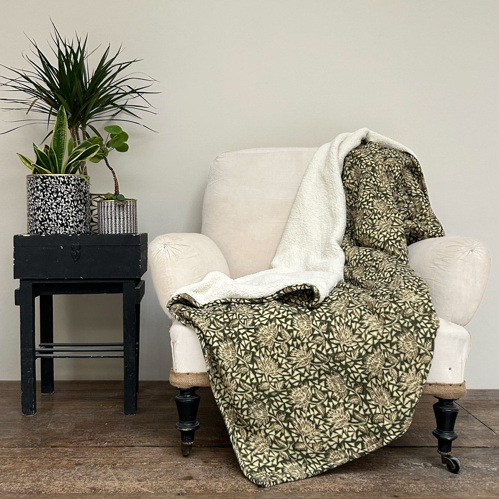 Cotton - sherpa blanket hand-printed with a wooden stamp in India.