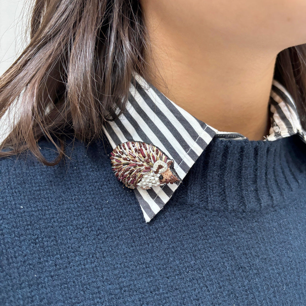 Broche hérisson, fabriquée artisanalement en Inde en petites séries.