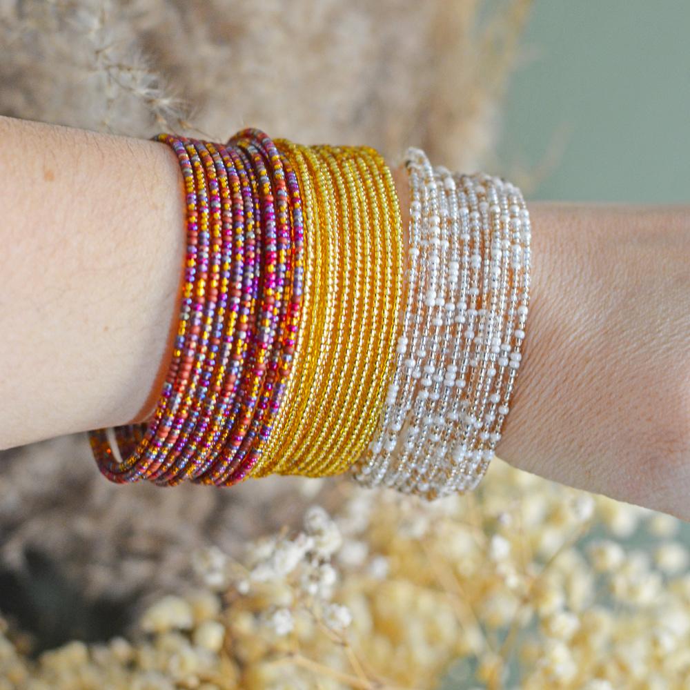 Indreni spring bracelet in glass beads by Kharmari - several colors available.