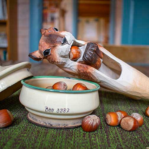 This nutcracker is as adorable as it is practical. Sturdy, it will crack your nuts measuring up to 3 cm. It is hand-carved and hand-painted, in lime wood.