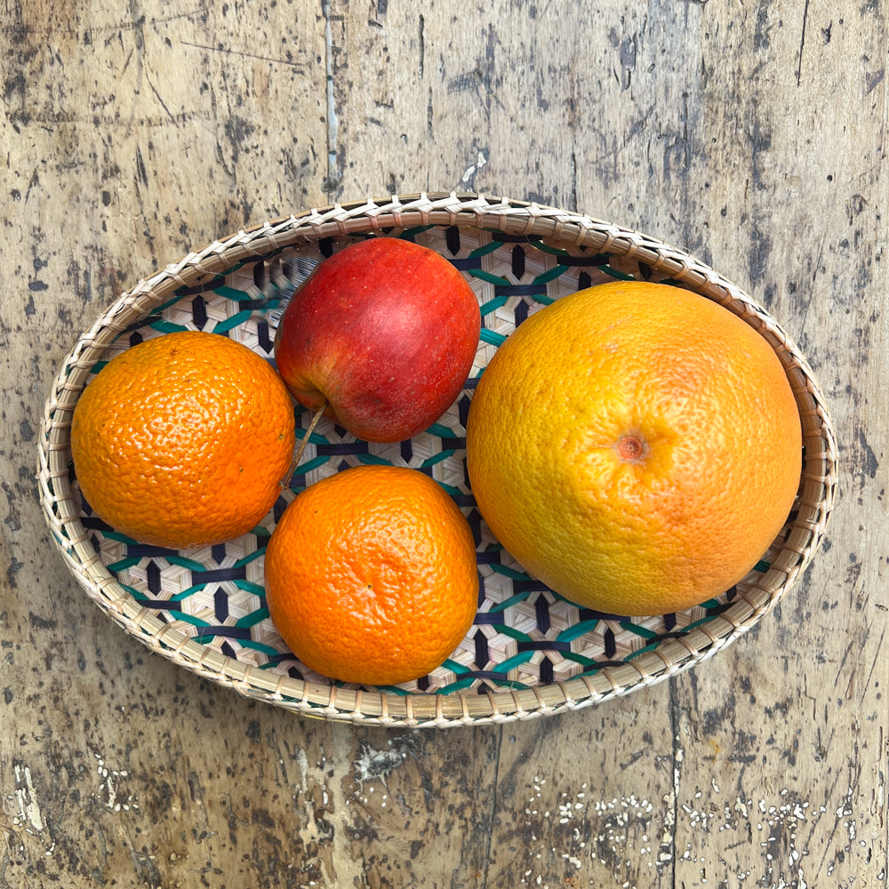 Natural rush basket 25x16x3 cm. For fruit or bread, it will enhance your table.