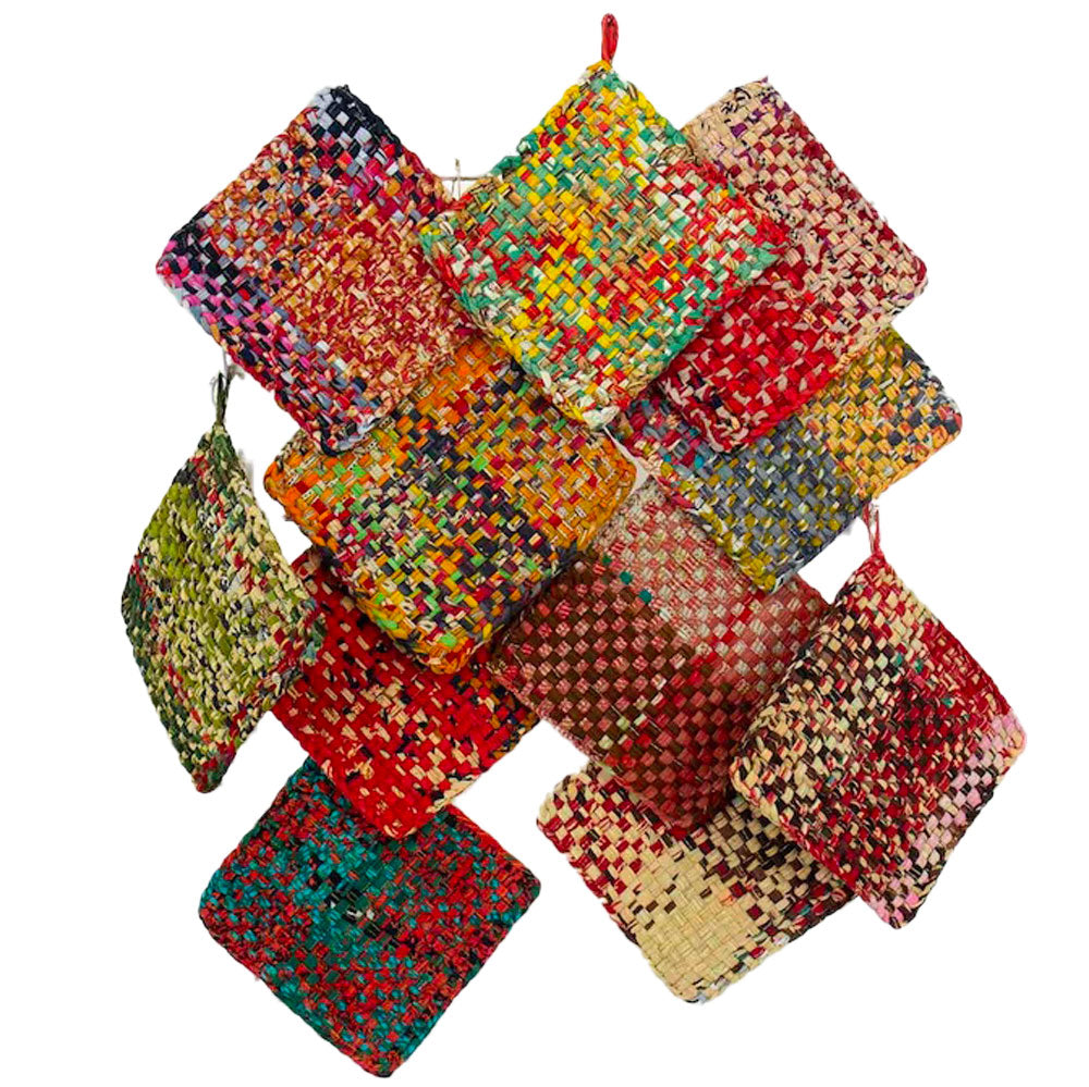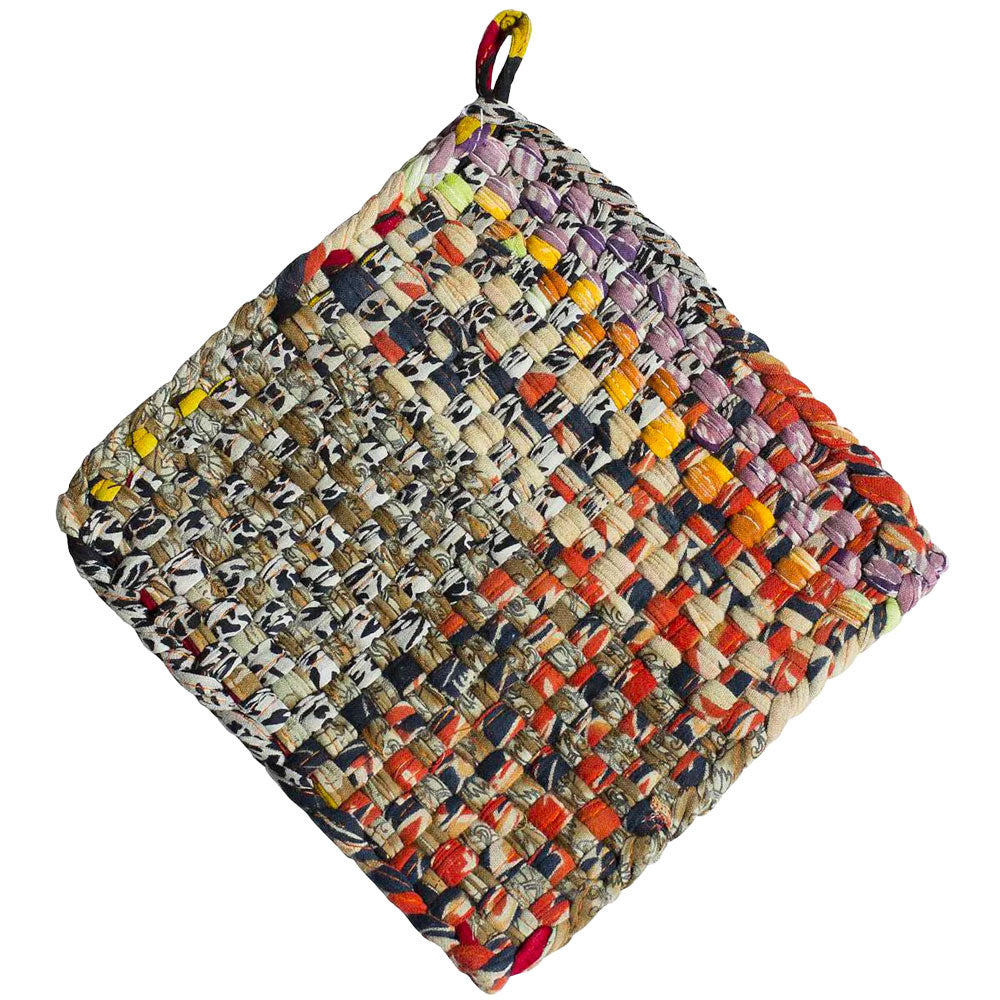 Potholder made from recycled fabric made from sari*. Each model is unique, the colors and patterns are random.