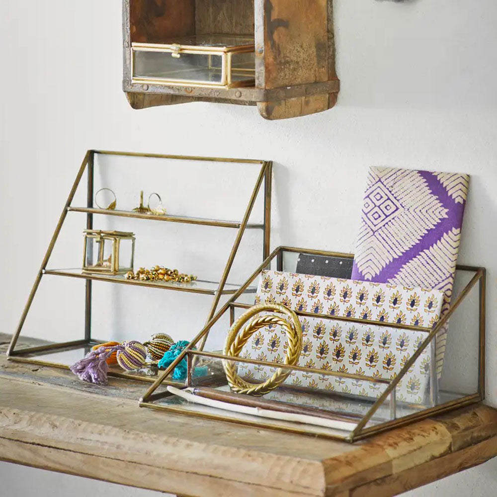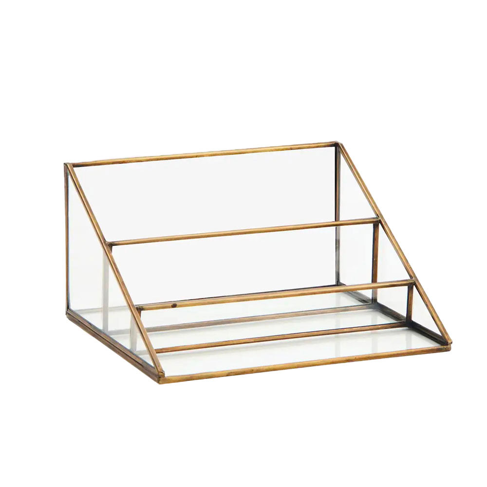 Glass and metal organizer, brass color.