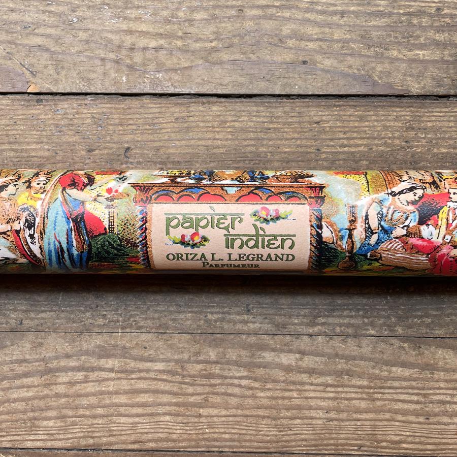 Tube containing a large 50x50cm sheet of parchment paper impregnated with “Indian paper” perfume