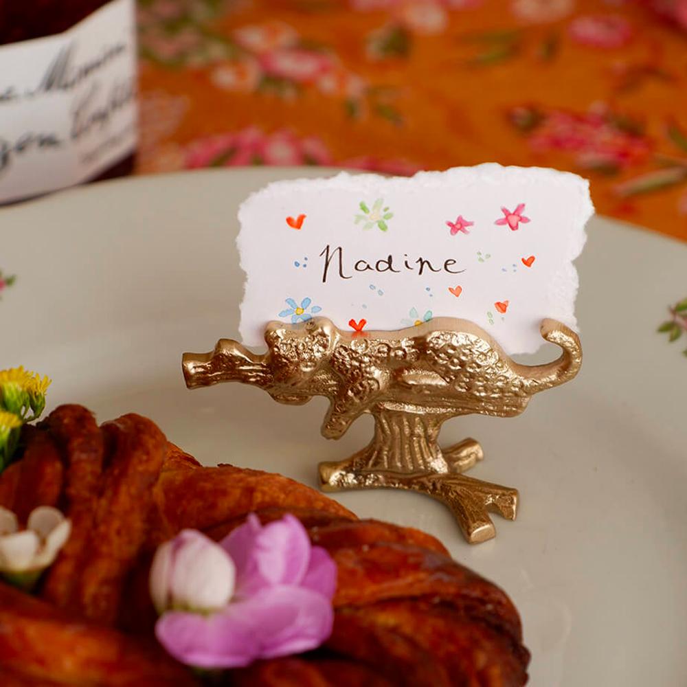We like to hang our photos, illustrations and even the names of the guests on a table plan.