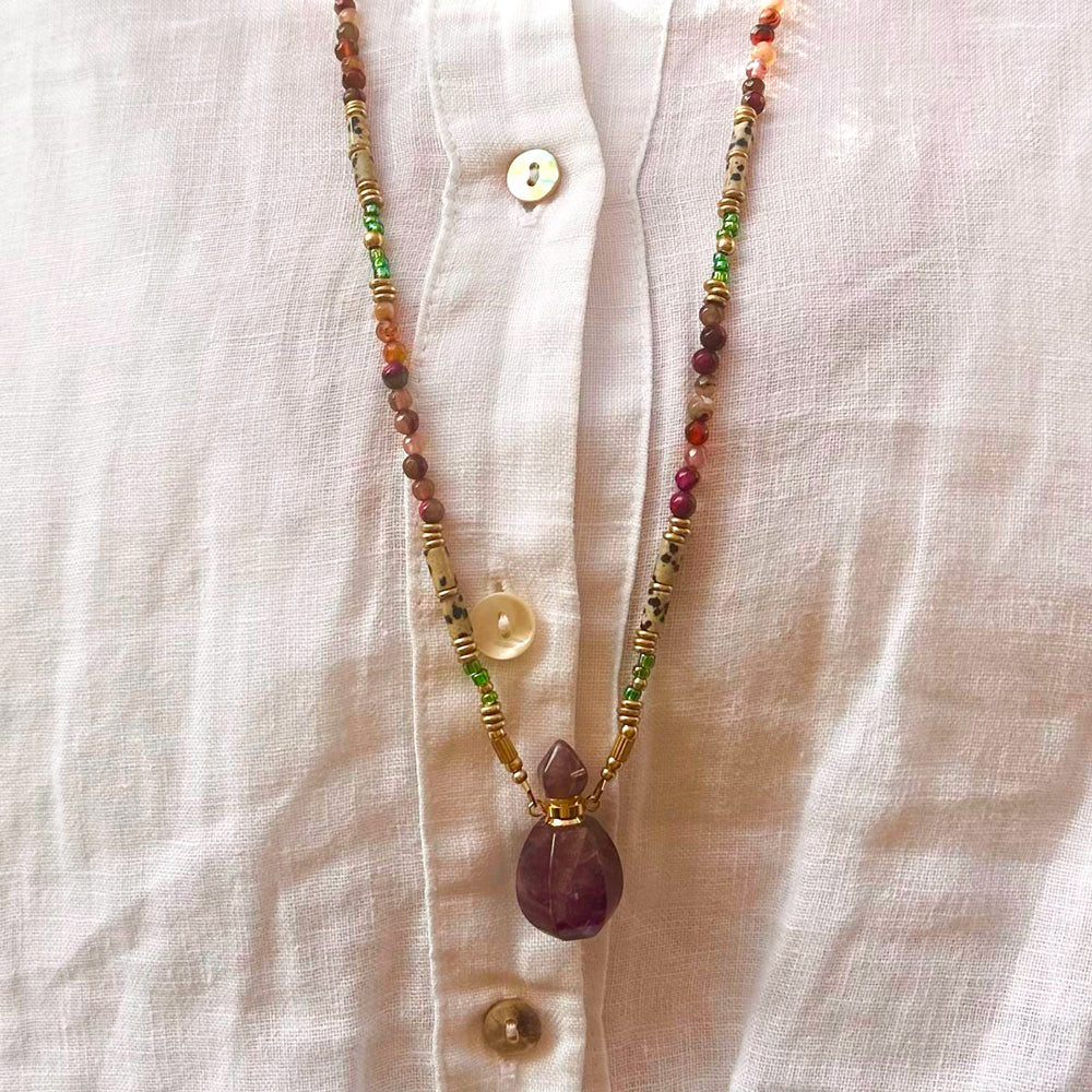 Kharmari necklace, made of pearls with a bottle pendant. You can fill the bottle with perfume or essential oil.