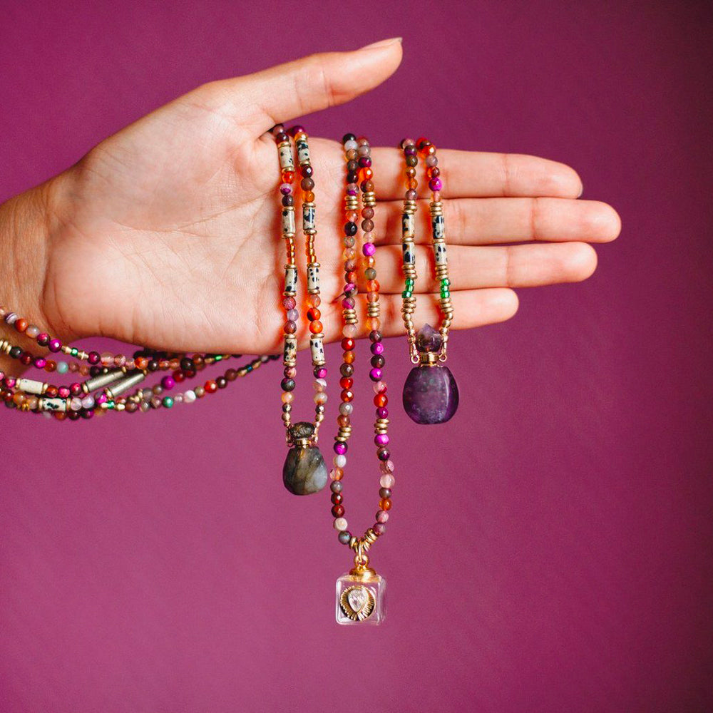 Her story : The creator of the Kharmari brand designs and produces each piece of jewelry in her Lyon workshop. She draws her inspiration from her many travels, particularly to Nepal.