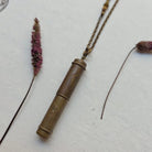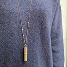 "Tube" necklace by Tabito - length 88cm, brass tube mounted on an old pocket watch chain.
