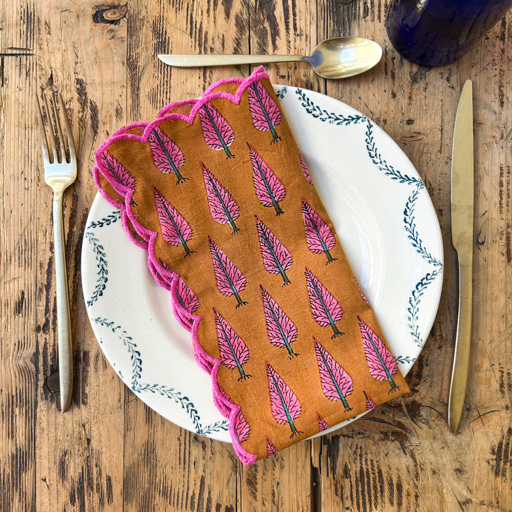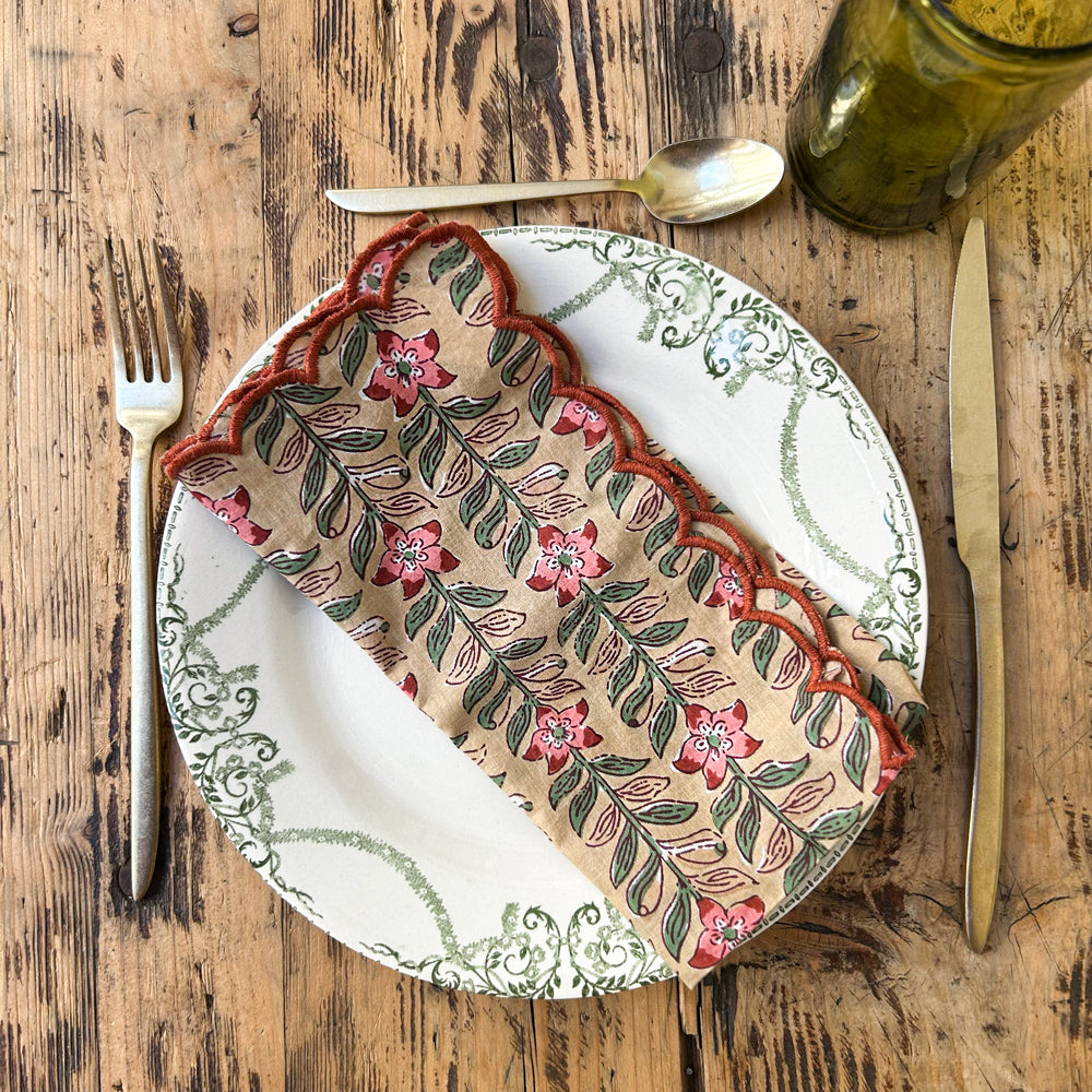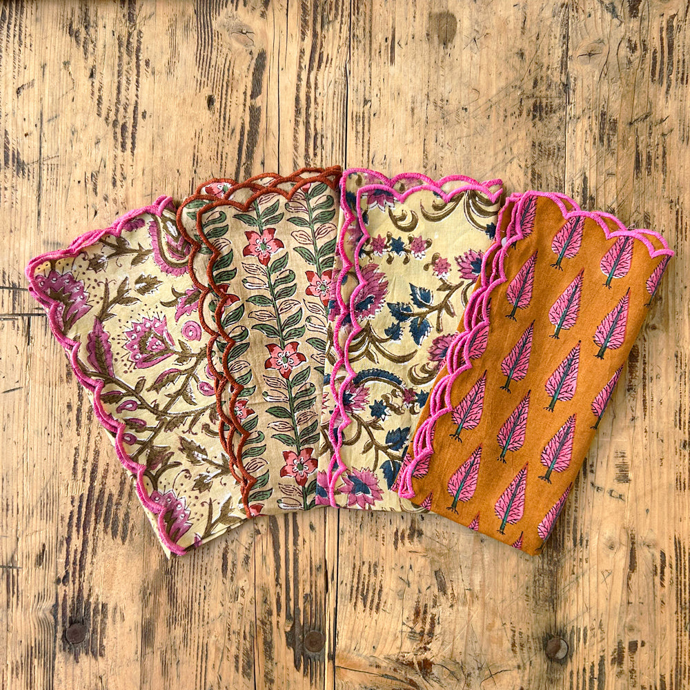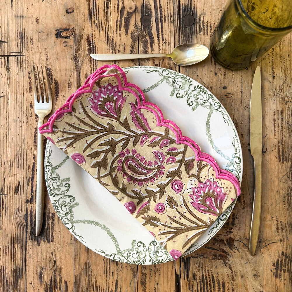 Printed cotton napkin, colored bourdon stitch finish 40 x 40 cm.