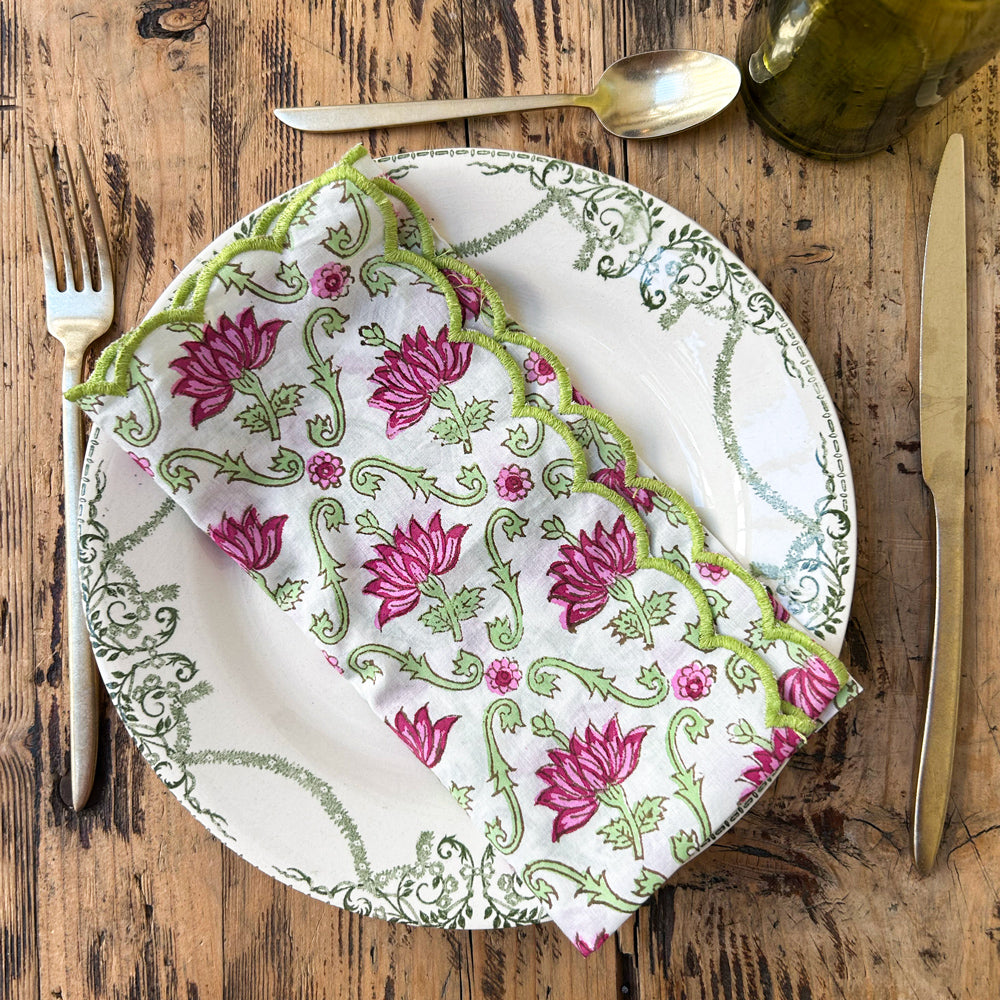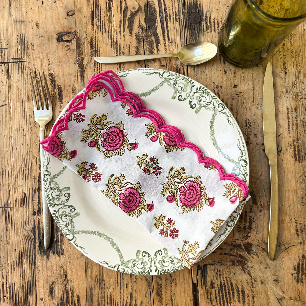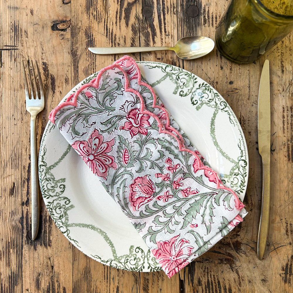 Printed cotton napkin, colored bourdon stitch finish 40 x 40 cm.