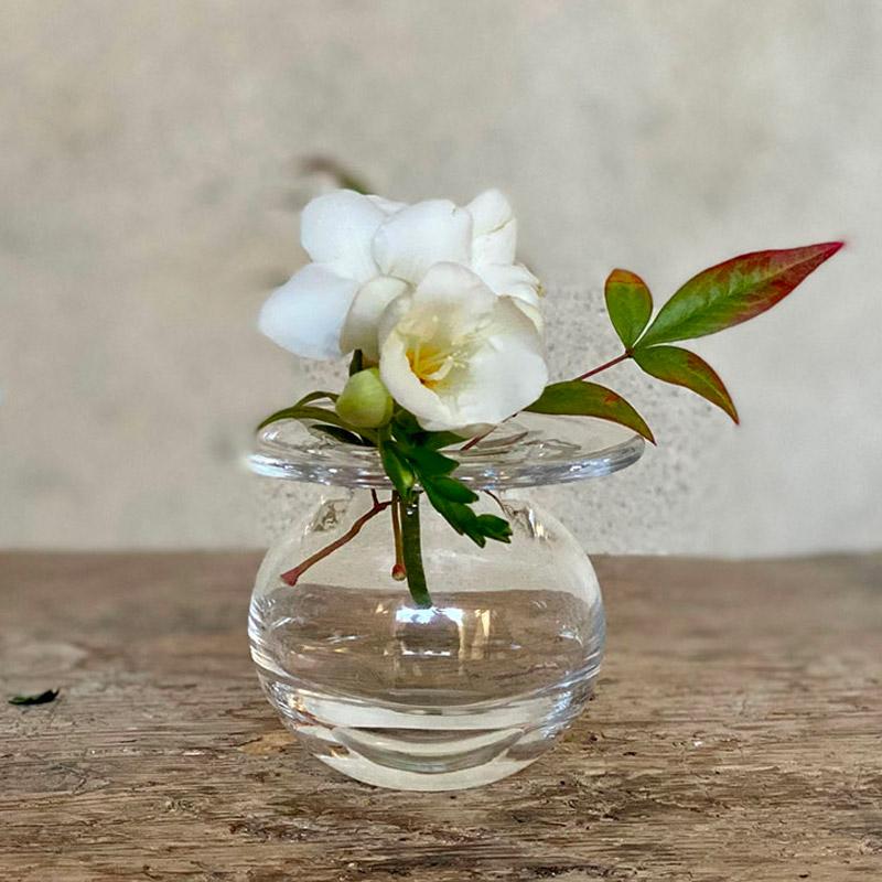 Small round vase for flowers and cuttings.