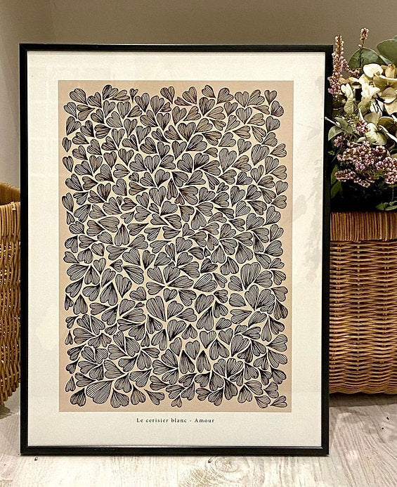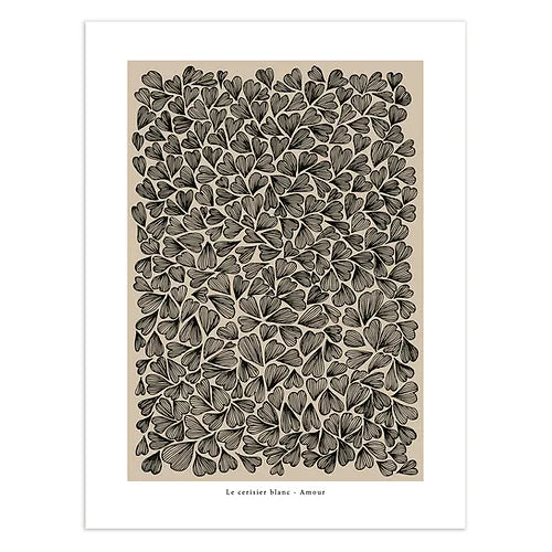 Affiche 30x40 cm en papier couché mat beige et noire.