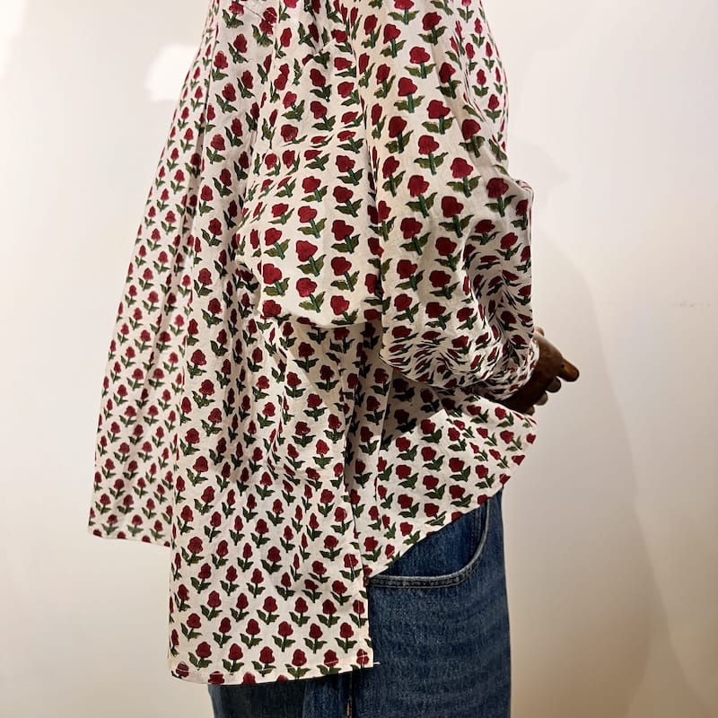 Blouse taille unique pensée par l'équipe Bonnesoeurs en capsule exclusive. Fabriquée en Inde, ses couleurs printanières et sa composition en pur coton sont idéales pour un usage quotidien.