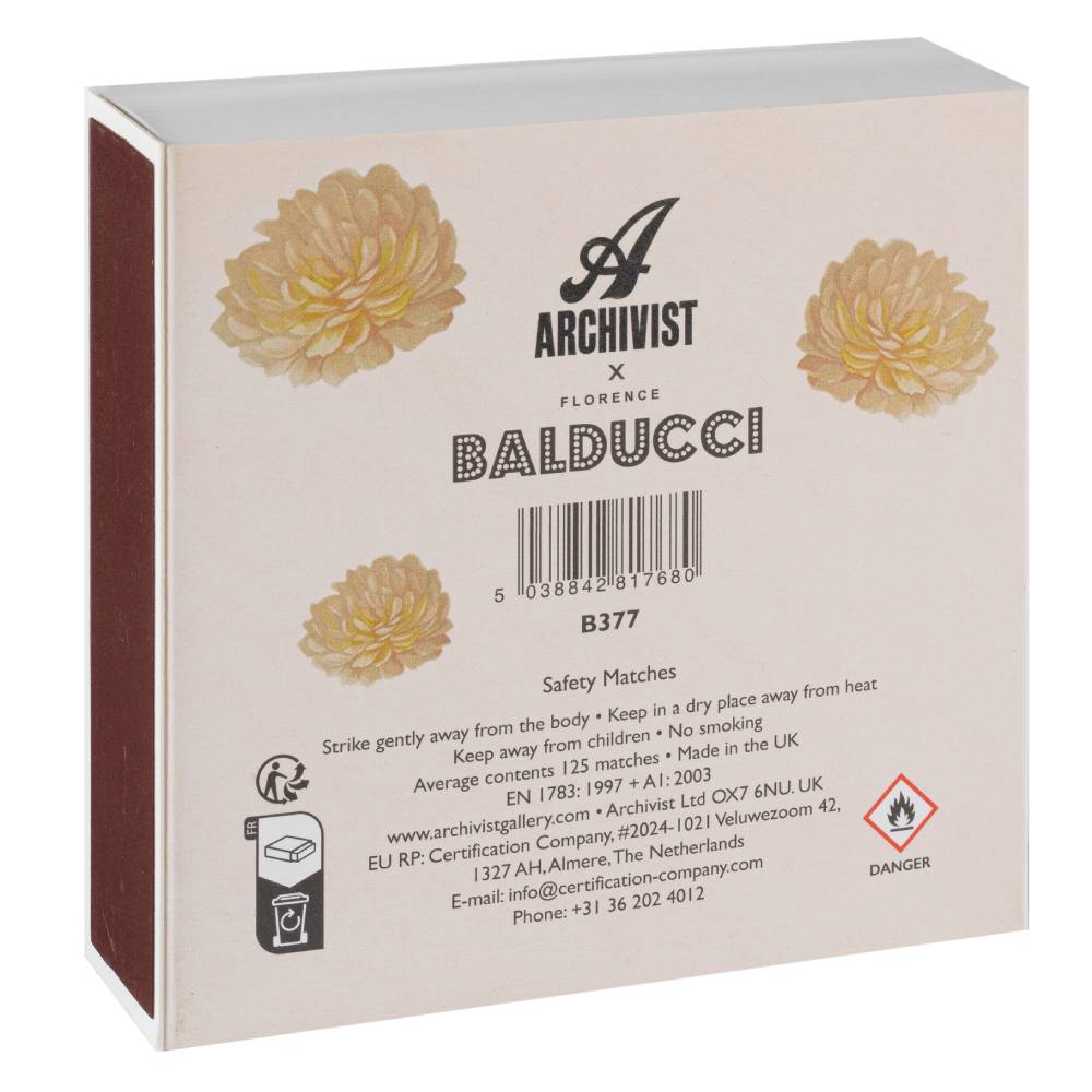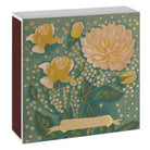 Boîte de 125 allumettes illustrée, dans un style vintage, d'une rose jaune sur fond vert émeraude.