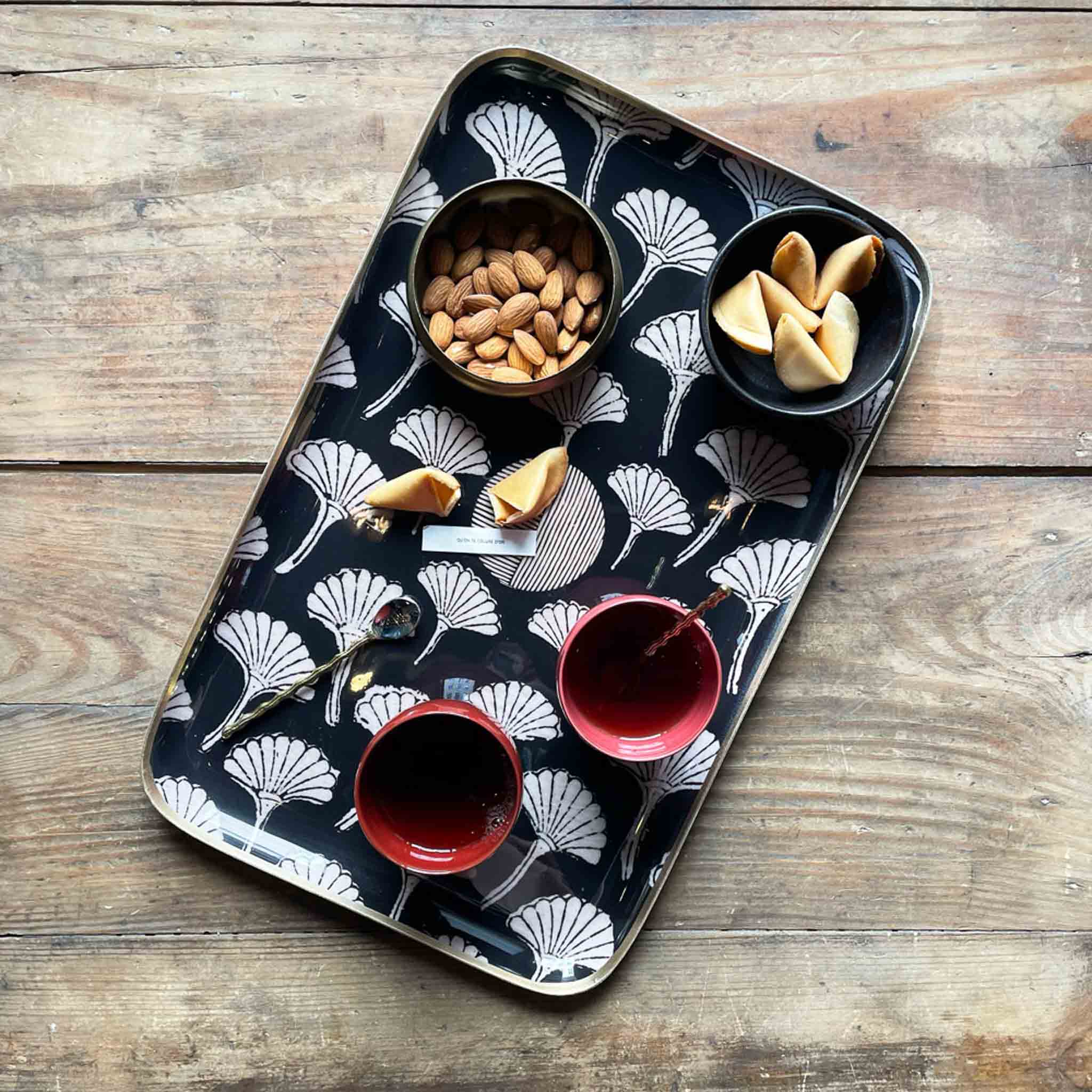 Plateau rectangulaire "Ginko" en aluminium émaillé par Boncoeurs.