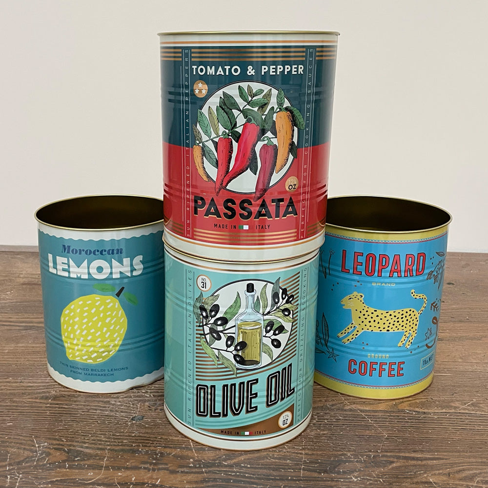 Sélectionnés pour leur esprit « boîte de conserve » et leur joli imprimé. Vous pouvez les utiliser comme cache-pot, comme rangement , pour vos ustensiles de cuisine... et bien plus encore!