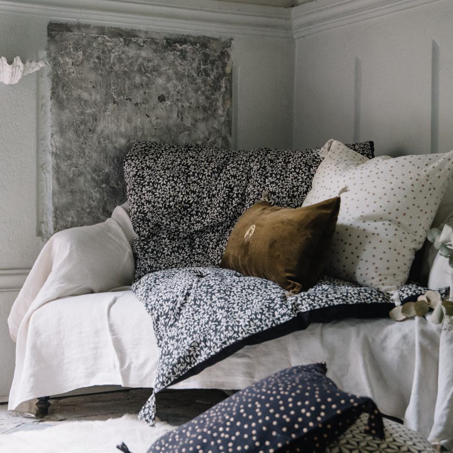 Vendu garni, déhoussable, fermeture par boutons en laiton forme coeur sacré au dos.